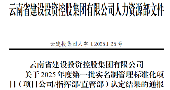 近日,集團通報了2025年度第一批建筑工人實名制管理標(biāo)準(zhǔn)化項目(項目公司/指揮部/直管部)認(rèn)定結(jié)果,公司承建的5個項目成功通過集團實名制管理標(biāo)準(zhǔn)化項目認(rèn)定,分別是第一直管部保山某項目、第二直管部云南農(nóng)業(yè)大學(xué)學(xué)生食堂(稷香園)建設(shè)項目、第七直管部五華區(qū)數(shù)字經(jīng)濟產(chǎn)業(yè)園西北新城園區(qū)項目、第八直管部文山職業(yè)技術(shù)學(xué)院產(chǎn)教融合實訓(xùn)基地項目。自集團啟動建筑實名制管理標(biāo)準(zhǔn)化項目認(rèn)定工作以來,公司以“六制一金一表”…