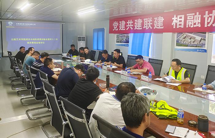 6月27日下午,由公司生產(chǎn)管理部組織公司策劃小組、五〇五、五〇八、第二、第三、第六、第九、第十一直管項目部生產(chǎn)副經(jīng)理和主任工程師,在第七直管項目部、第一安裝直管項目部共同負(fù)責(zé)施工的云南藝術(shù)學(xué)院項目召開中間階段策劃驗收暨云南師范大學(xué)二標(biāo)項目策劃總結(jié)會議。公司副總經(jīng)理楊永、副總工程師(主持工作)馬秉慶參會。