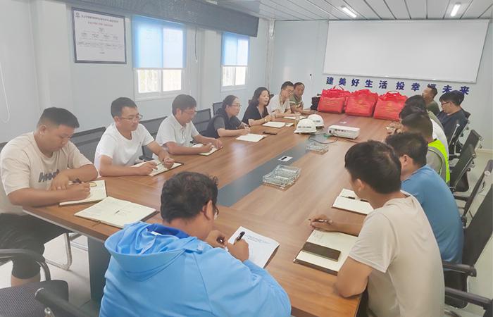 白建萍與項目部全體管理人員開展座談交流,對一線員工工作、生活情況進(jìn)行了解,向堅守一線的干部職工致以誠摯的慰問和衷心的感謝,為項目部送上清涼物資,叮囑大家注意防暑降溫,確保身體健康和施工安全。