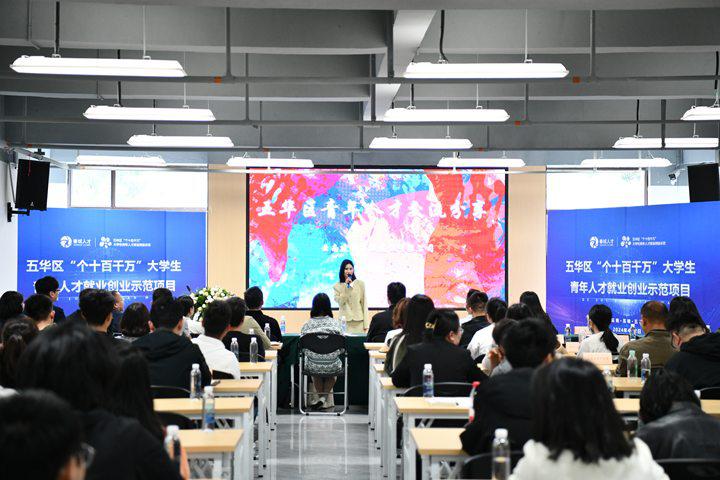 公司職工在五華區(qū)“個十百千萬”大學(xué)生青年人才就業(yè)創(chuàng)業(yè)示范項目發(fā)布會進(jìn)行宣講