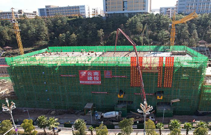 百日攻堅 | 云南技師學院教育強國工程實訓用房(G-3、G-4、G-5)建設項目G-4實訓樓主體結構順利封頂